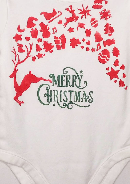 Merry Christmas Reindeer Star Upcycled Bodysuit by Eco Pretty - 18-24 Months