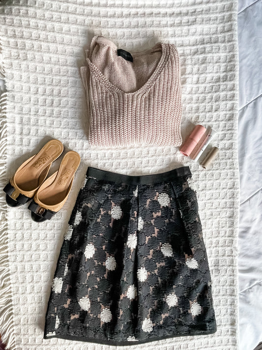 Lida Baday Black Floral Lace Overlay Silk A-Line Skirt - Size 2