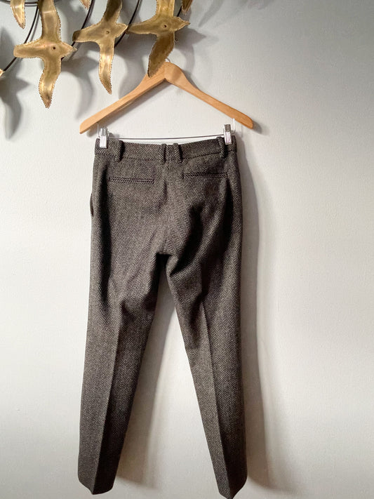 Gucci Grey Herringbone Wool Pleated Trouser Pants - IT 36 / XXS