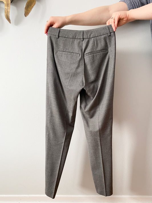 Grey Wool High Rise Pleated Trouser Pants - XS
