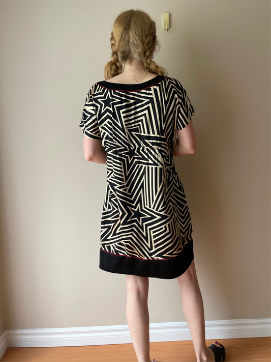 Buffalo David Bitton Black & Cream Geometric Star 100% Silk Mini Dress – Size Medium