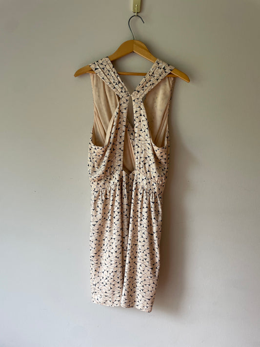 BCBGeneration Blush Geometric Print Draped Cutout Sleeveless Dress – Size 10