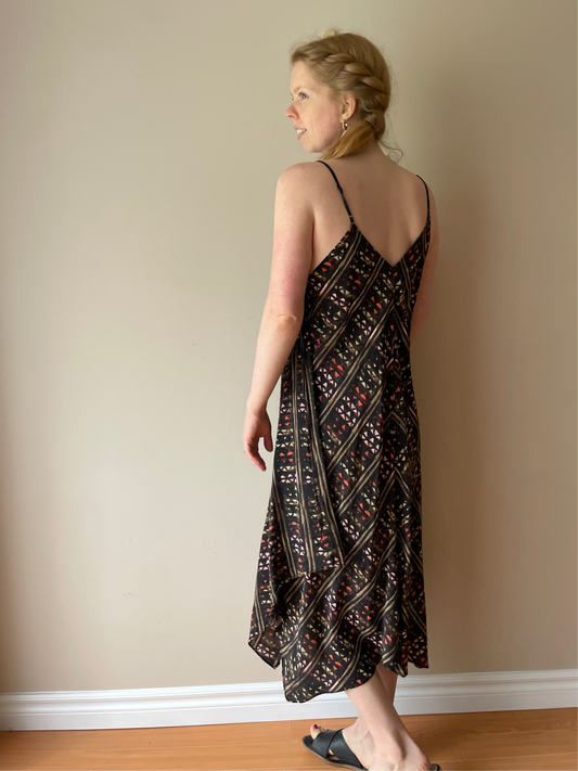 Anthropologie Black Multi Abstract 100% Silk Handkerchief Hem Dress – Size Medium