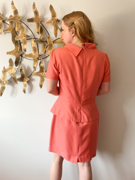 Talbots Coral 100% Silk Jackie O Collar Bow Sheath Dress - Size 10