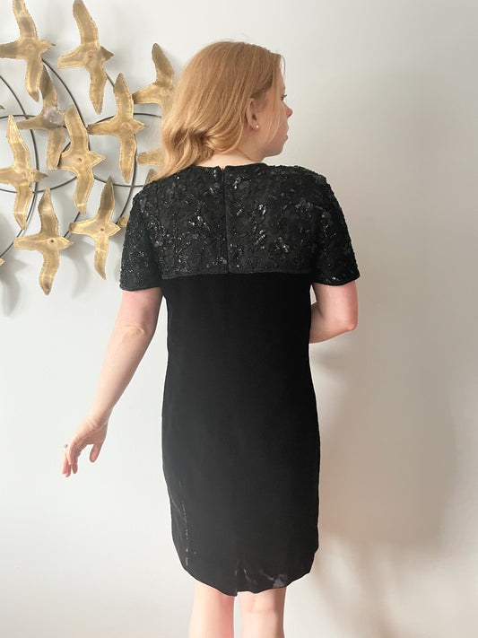 Talbots Black Velvet Sequin Neckline Sheath Dress - Size 10 Petite