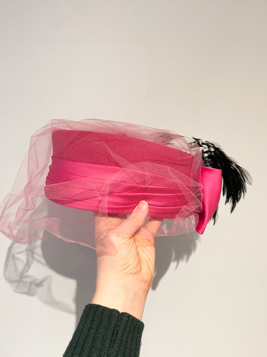 Geo. W. Bollman & Co. Vintage Pink Feather Pillbox Hat
