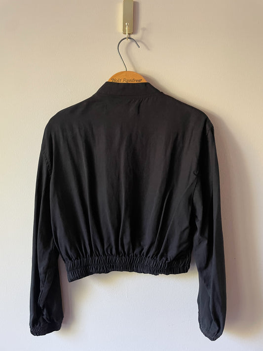 Zara Black Lyocell Cropped Bomber Jacket - Small