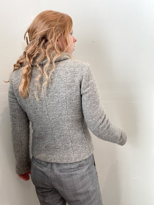 Ann Taylor Grey Wool Cropped Aviator Jacket - Small
