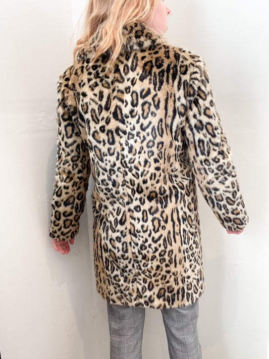 LINE Cheetah Leopard Print Faux Fur Long Jacket - XS/S