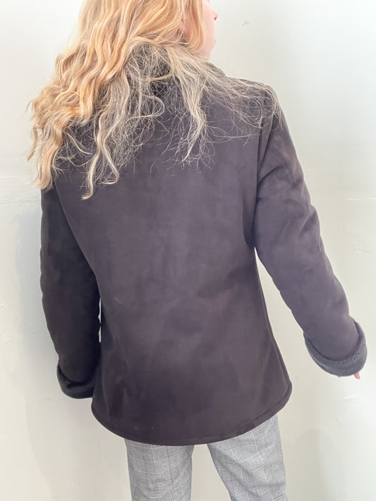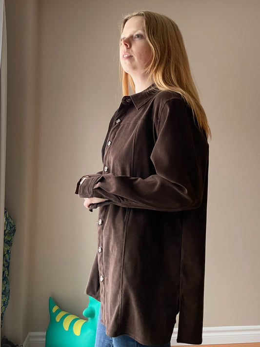 Outline Vintage Chocolate Brown Faux Suede Button-Up Jacket – Relaxed Fit - Size 12