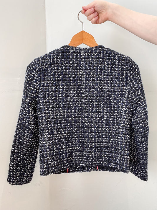 J. Crew Navy Black Metallic Tweed Cropped Lady Jacket Blazer - Size 00