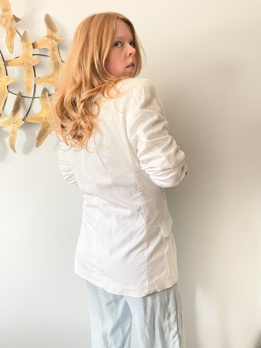 Ralph Lauren Vintage White 100% Cotton Gold Button Blazer - Size 12