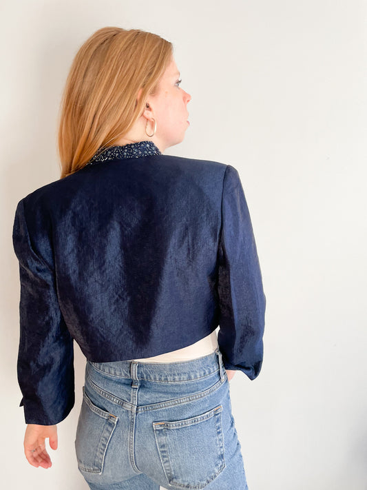 Jessica Howard Midnight Blue Satin Beaded Neck Blazer - Size 6