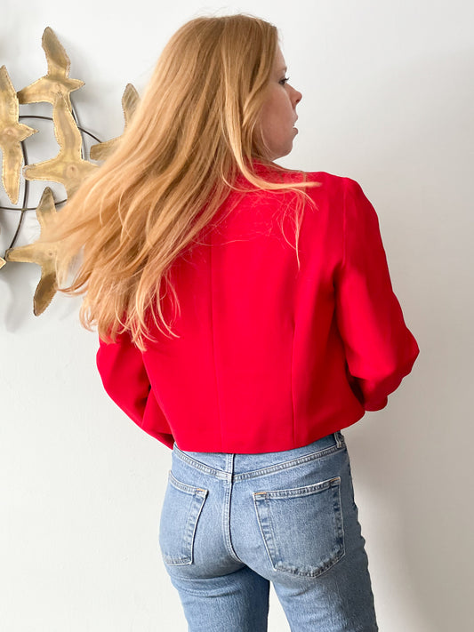 Talbots Red Cropped Single Button Closure Jacket Blazer - Size 10