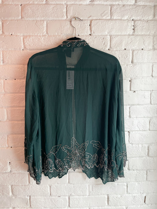 Jkara Hunter Green Beaded Sheer Jacket NWT - Size 20