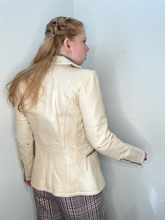 OXMO Cream Genuine Leather Moto Jacket - XS / Small