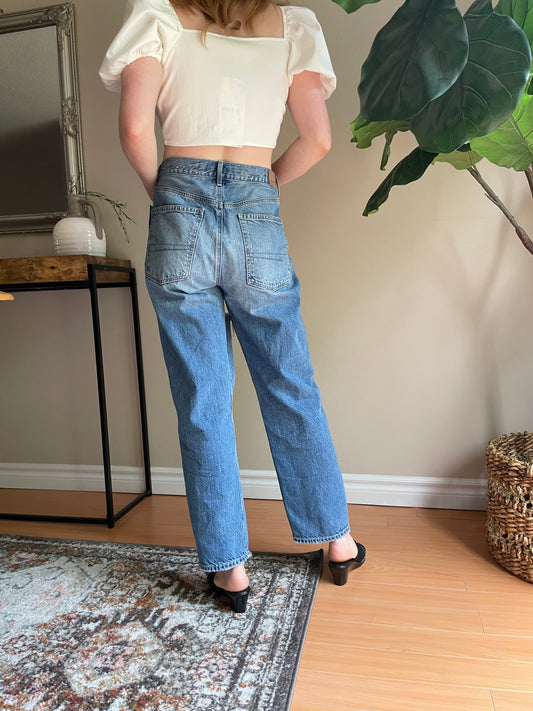 American Eagle Light Wash Barrel Leg Distressed 90's Boyfriend Jeans - Size 6