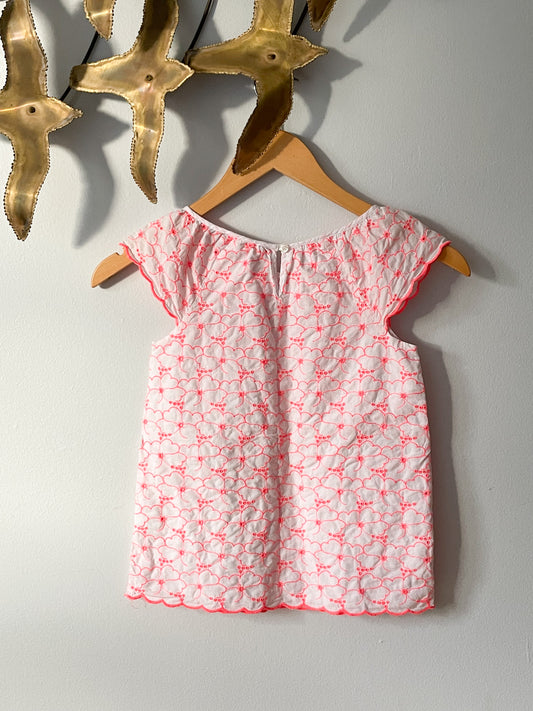 Lands' End Kids Neon Pink White Embroidered Cotton Cap Sleeve Top - Girls 6