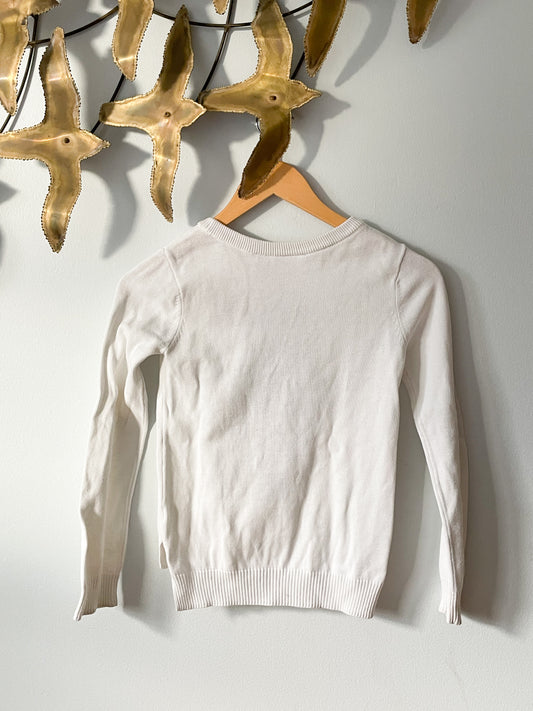 White & Silver Sequin Owl Long Sleeve Knit Sweater - Girls 7/8
