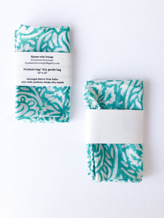 Reusable Zero Waste Salvaged Organic Cotton Produce + Dry Goods Bags -10" x 12"