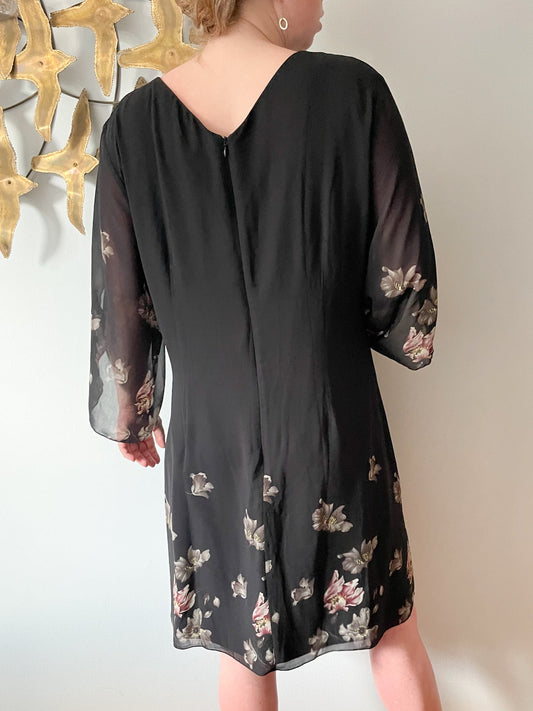 Grace Karin Black Floral Chiffon Slit Sleeve Dress NWT - 2XL