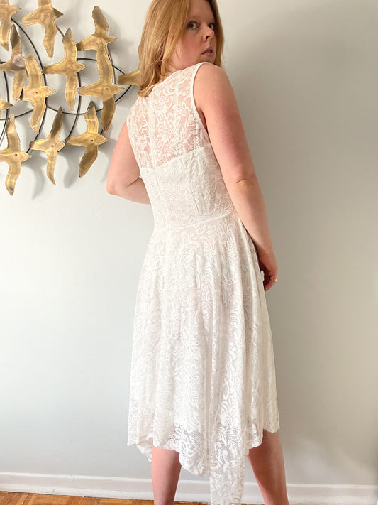 MeetJen White Lace Sleeveless Asymmetrical Hem Fit Flare Dress NWT - 3XL
