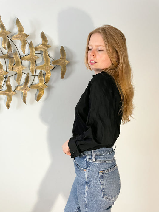 Anne Fontaine Paris Black Pima Cotton Collar Shirt - Size 12
