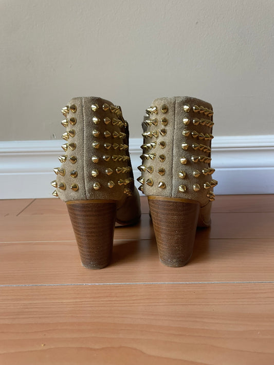 Zara Woman Beige Genuine Suede Gold Studded Heel Boots - Size 37