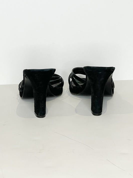 Banana Republic Black Genuine Suede Sandal Strappy Slide On 3.5" Heels - Size 7.5