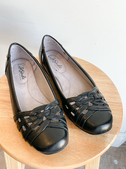 Life Stride Black Cutout Cushioned Flats - Size 7