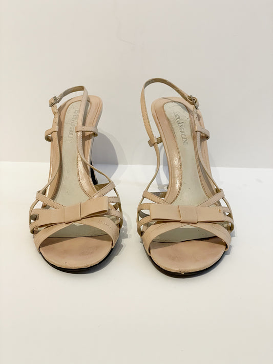 Enzo Angiolini Beige Leather Strappy Bow Heels - Size 7.5