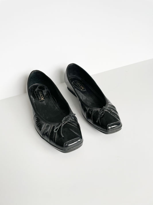 Geox Respiraâ„¢ Respira Black Patent Square Toe Flats Slip On Shoes - Size 8