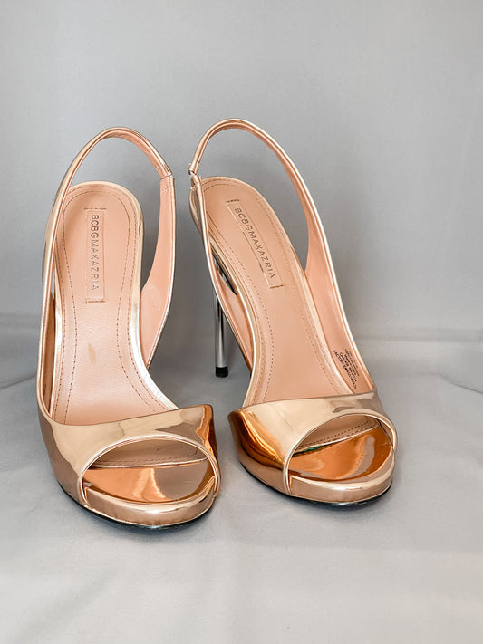 BCBGMaxAzria Rose Gold Stilletto Peep Toe Heels - Size 9.5