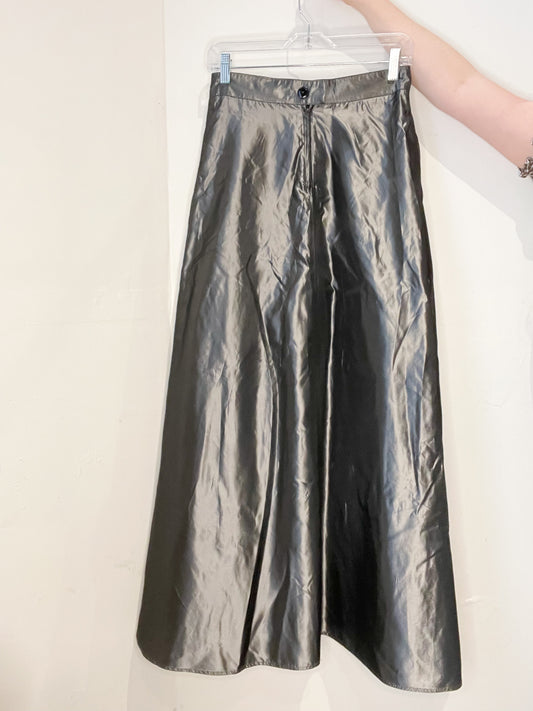 Vintage 90's Silver Satin Maxi A-Line Skirt - Small