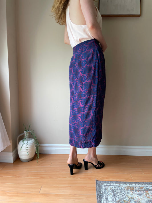 Vintage Rena Rowan 100% Silk Magenta & Navy Wrap Skirt – Small