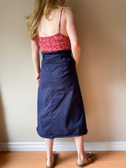 GAP Navy Cotton A-Line Midi Skirt - Size 8