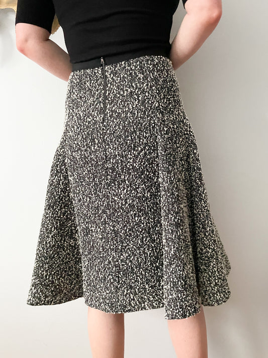 Lida Baday Black White Tweed Trumpet Wool Midi Skirt - Size 2
