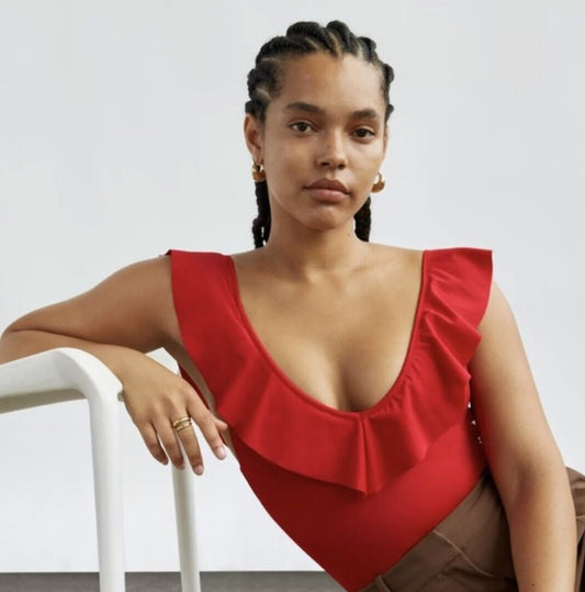 Wilfred Red Ruffle One Piece Bodysuit / Swimsuit - XS