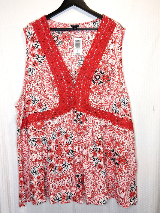 Torrid Red Floral Boho Lace-Up Babydoll Tank Top NWT - 5X