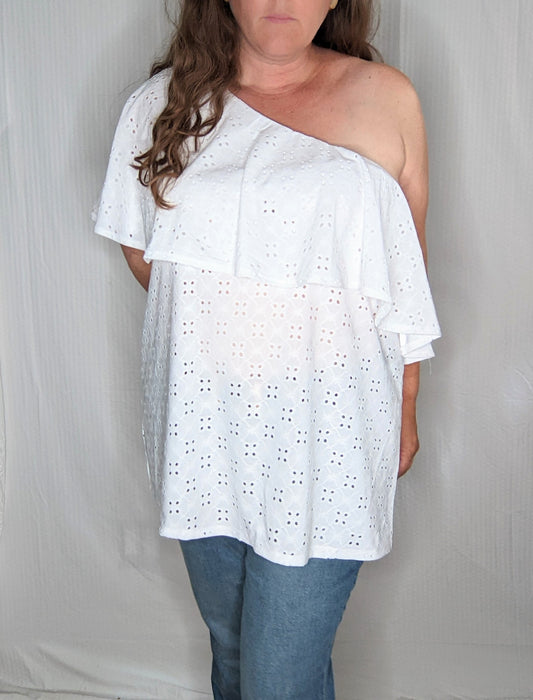 Torrid White One Shouldered Eyelet Ruffle Top NWT - 3XL