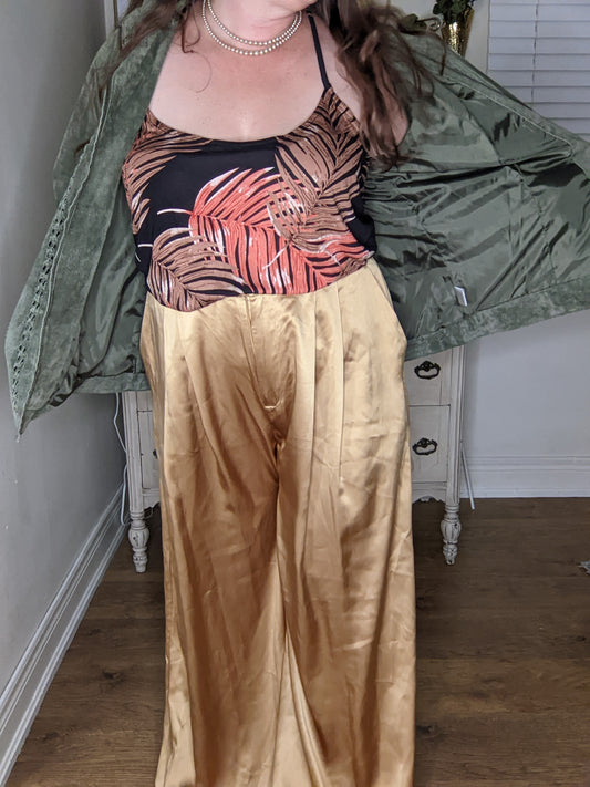 Venus Black Brown Coral Leaf Print Racerback Top - 2XL