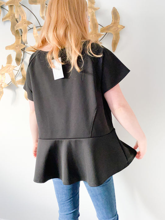 Worthington Black Peplum Short Sleeve Top - 3XL