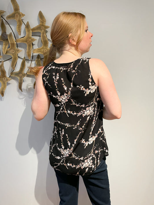 Violet + Claire Black White Graphic Sleeveless Cutout Top - Small