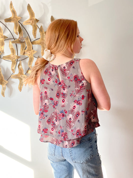 Loft Feather Floral Flutter Hem Sleeveless Top - Small Petite