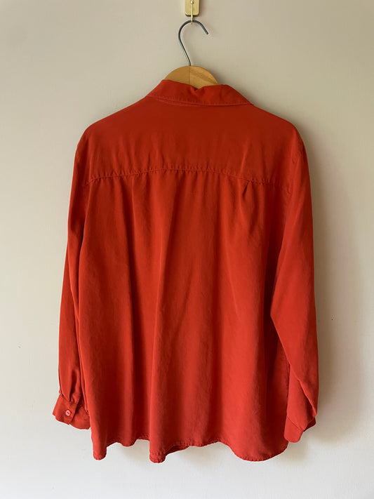 Rust Red 100% Silk Button-Up Blouse – Size 16