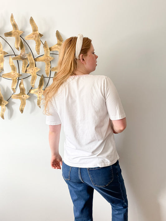 Lucia White Cotton Stretch Pink Stitched T-Shirt - Size 14