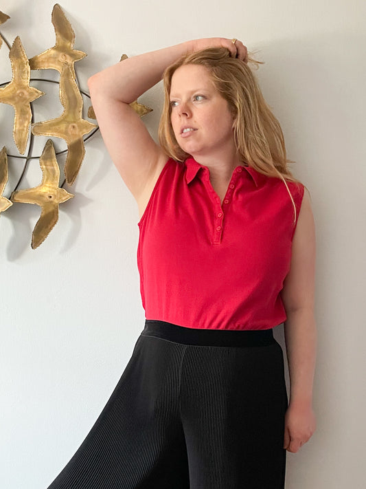 Northern Reflections Red 100% Cotton Sleeveless Polo Top - XL