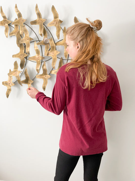 Ellen Tracey Unicorn Upcycled Wine Red Jersey Long Sleeve Top - XL/XXL