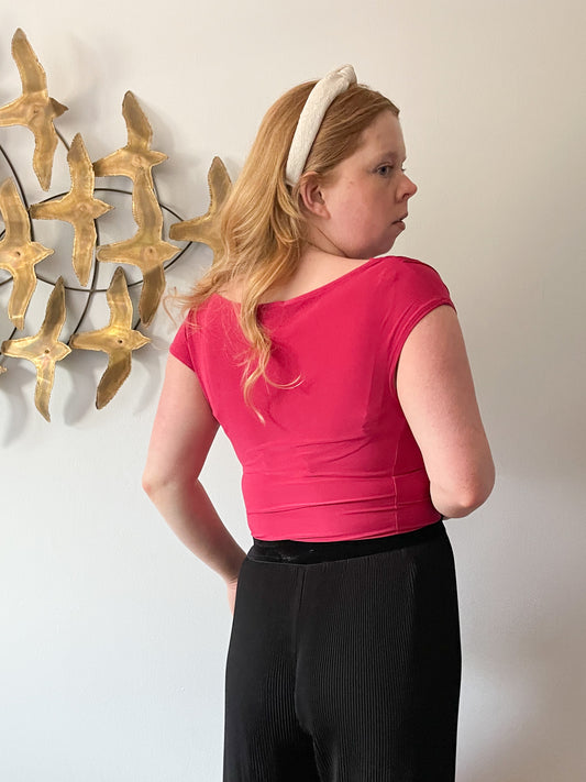 GUESS Vintage Hot Pink Cowl Neck Gathered Sleeveless Top - XS