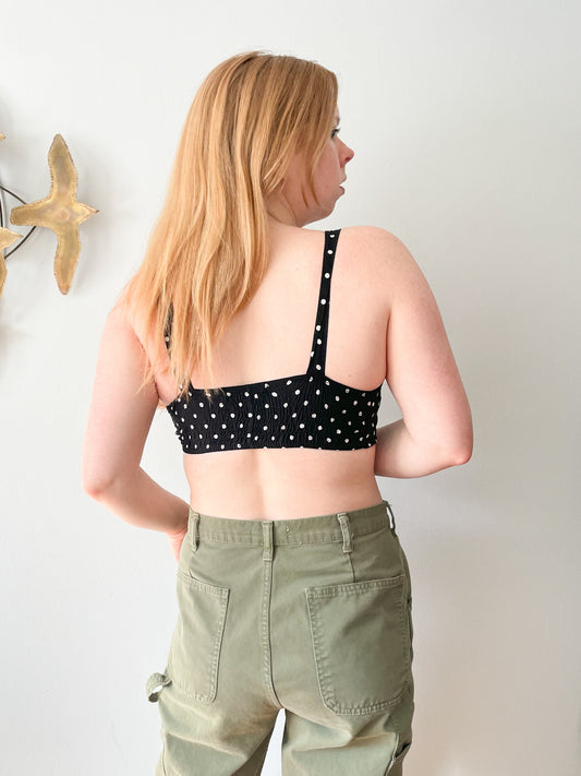 Brandy Melville Black White Polkadot Cotton Crop Top Bralette - XS/S